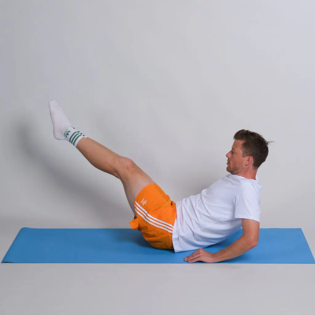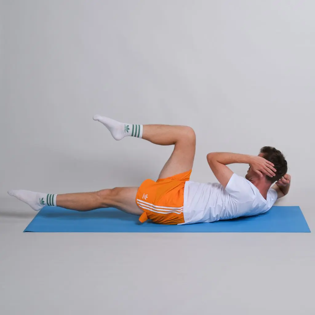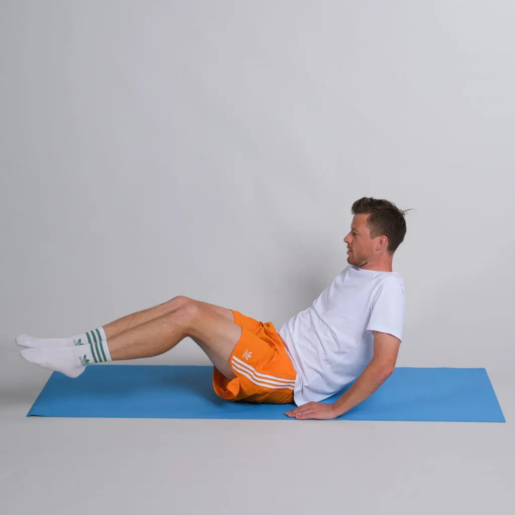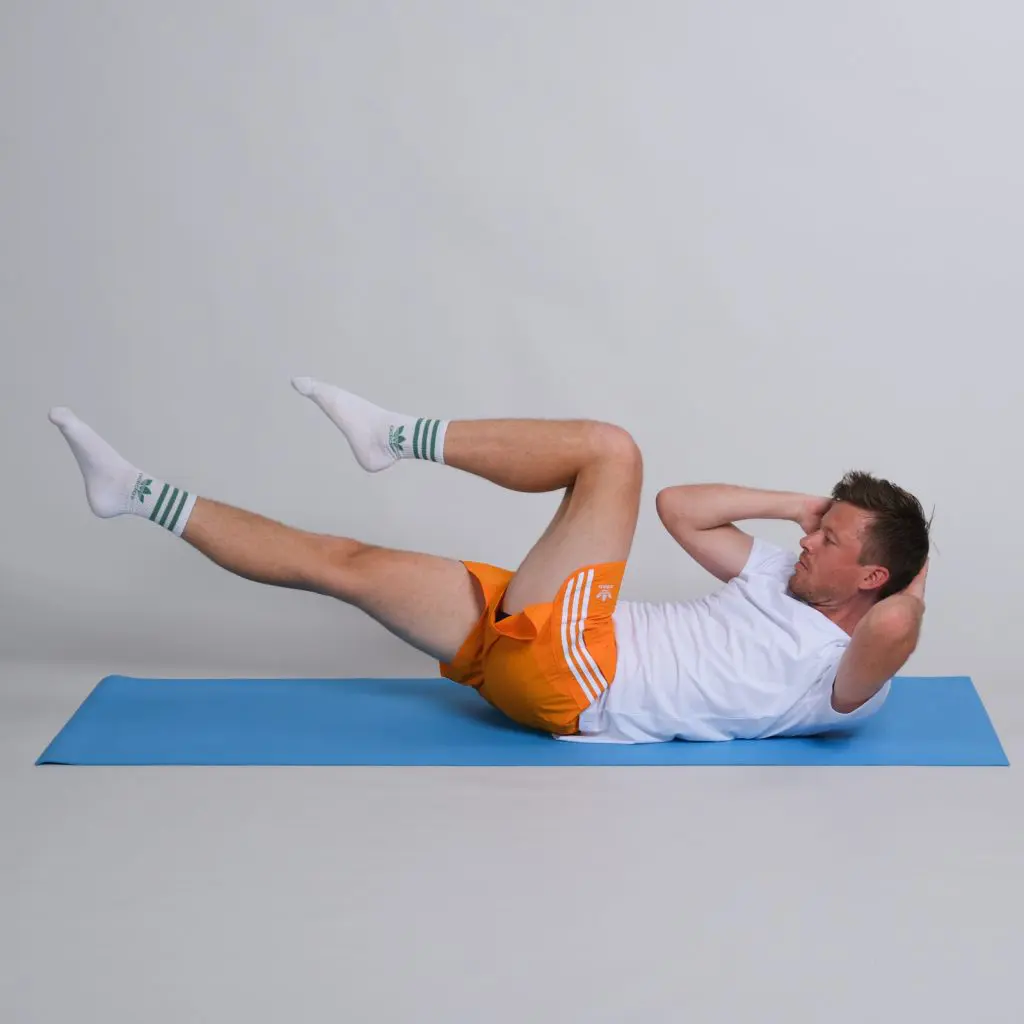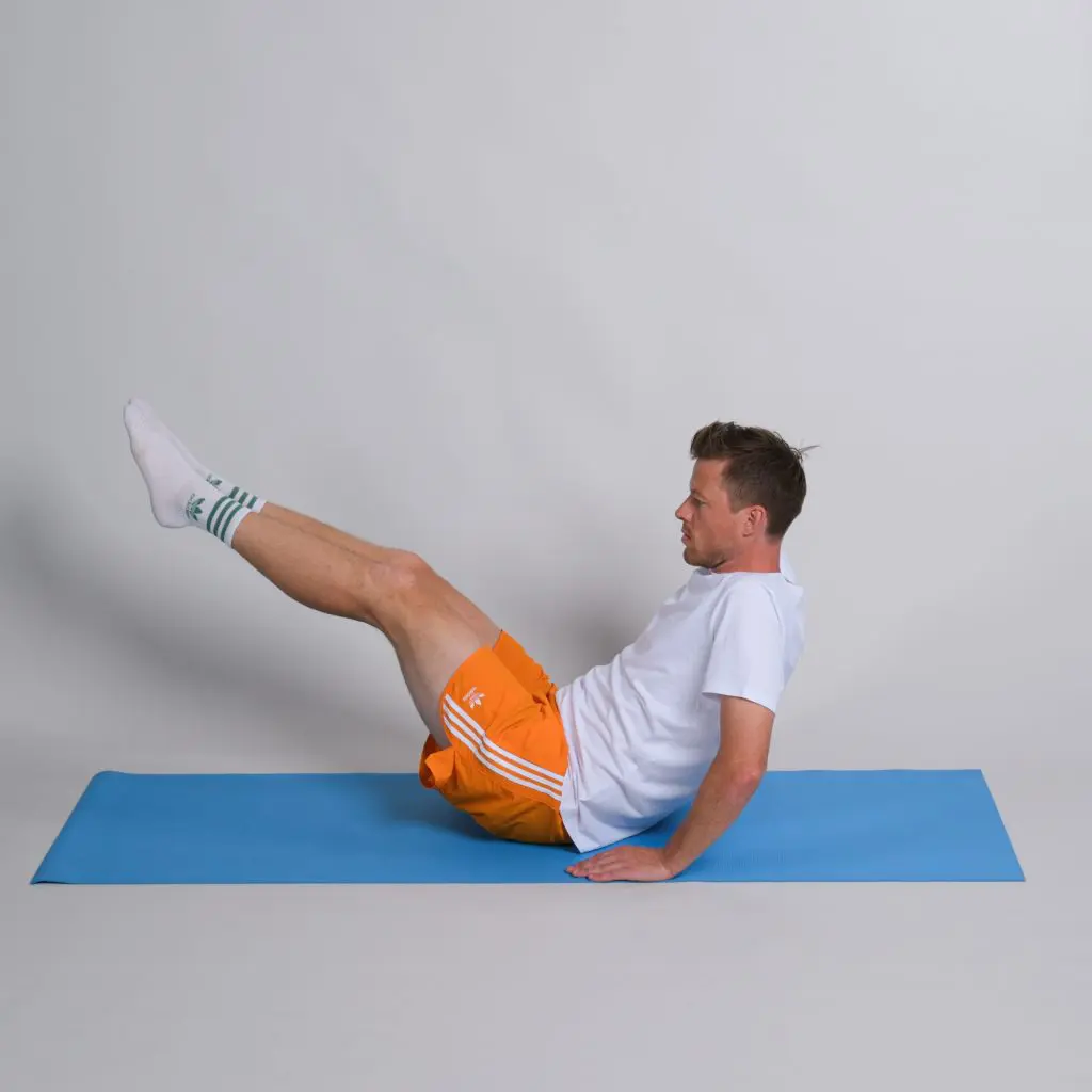 ”Reverse crunches”. Lig på gulvet med 90 grader bøjede knæ og hænderne under hoften. Løft fødderne 10 cm op fra gulvet. Med en hurtig bevægelse fører du dine ben ind mod dit bryst, løfter bækkenet fra gulvet og skubber fødderne op mod loftet. I samme bevægelse sænkes bækken og ben, så fødder netop kommer i gulvet inden øvelsen gentages.
