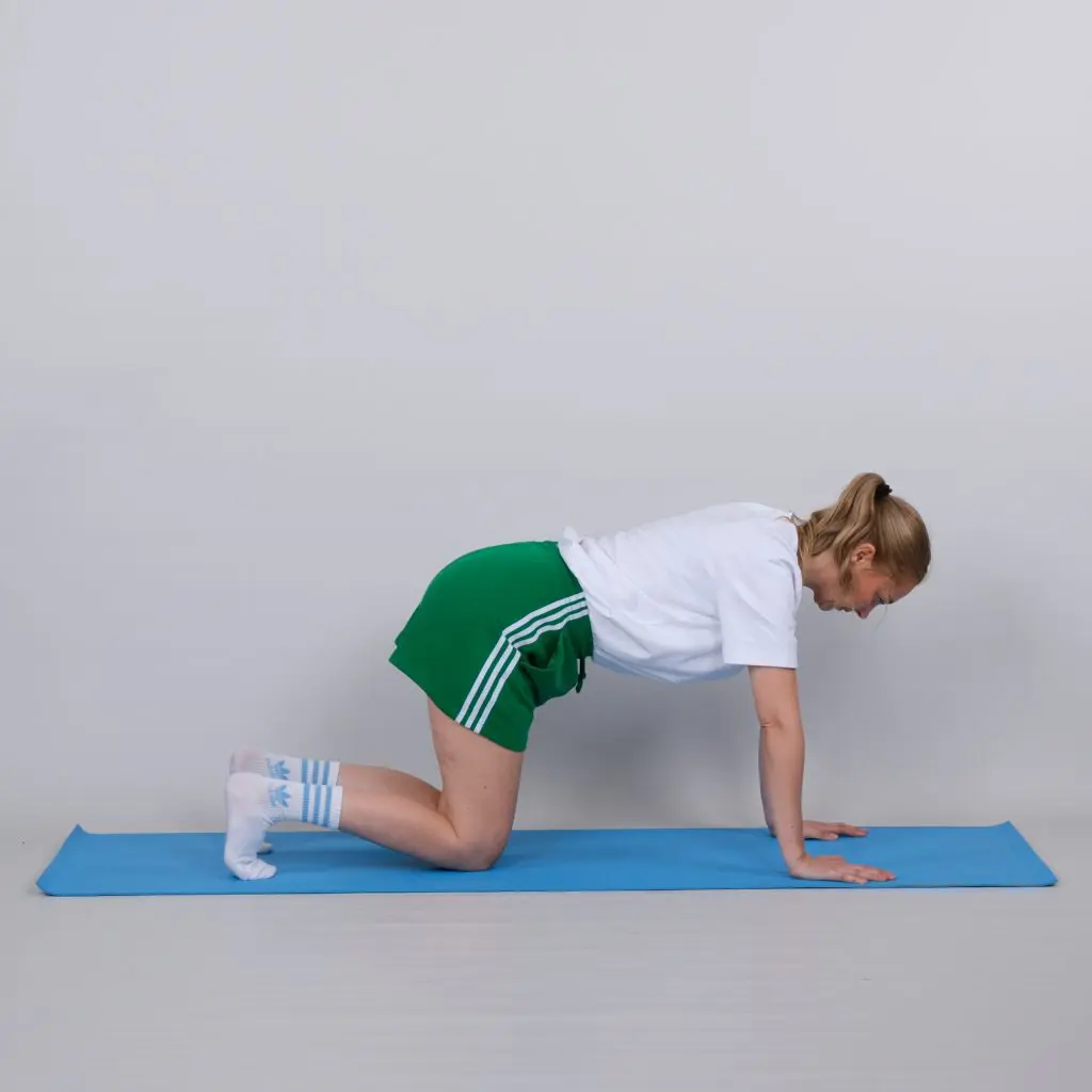 Sid på en stol. Hold en træningselastik i begge hænder. Placer elastikken omkring storetåen. Bøj storetåen opad så meget som muligt ved at trække i elastikken. Hold yderstillingen i 10 sekunder. Bøj derefter langsomt storetåen nedad så meget som muligt, så elastikken udspændes. Hold spændingen i et par sekunder og bøj derefter storetåen opad, så udgangspositionen nås.