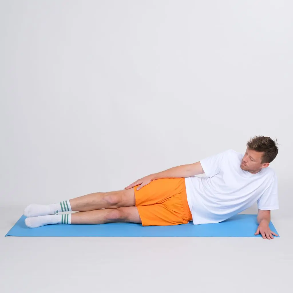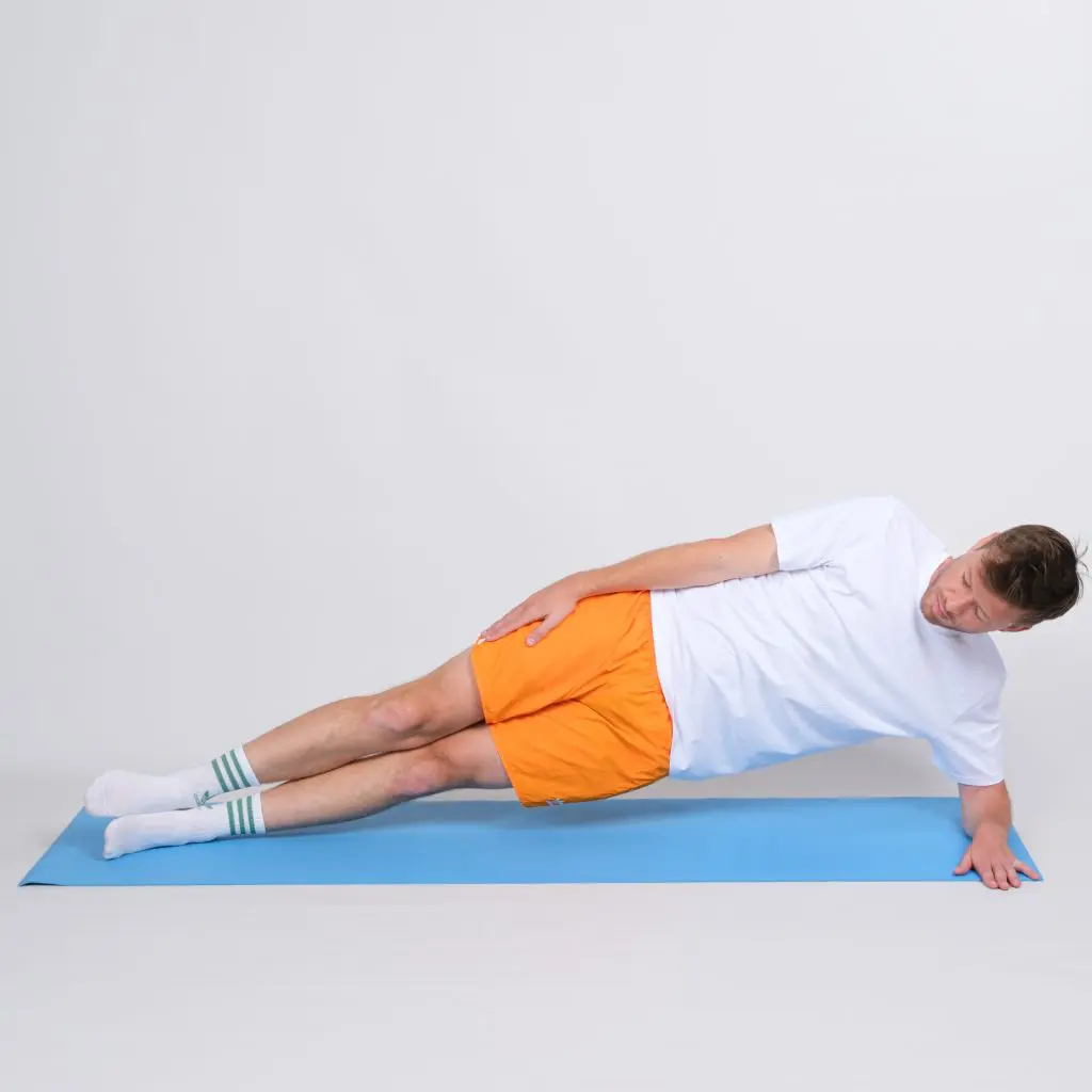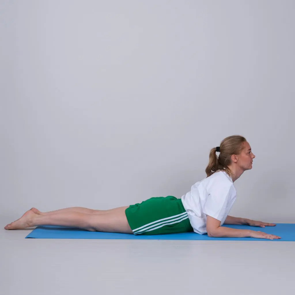 Øvelsen kan også udføres liggende på siden eller på maven.