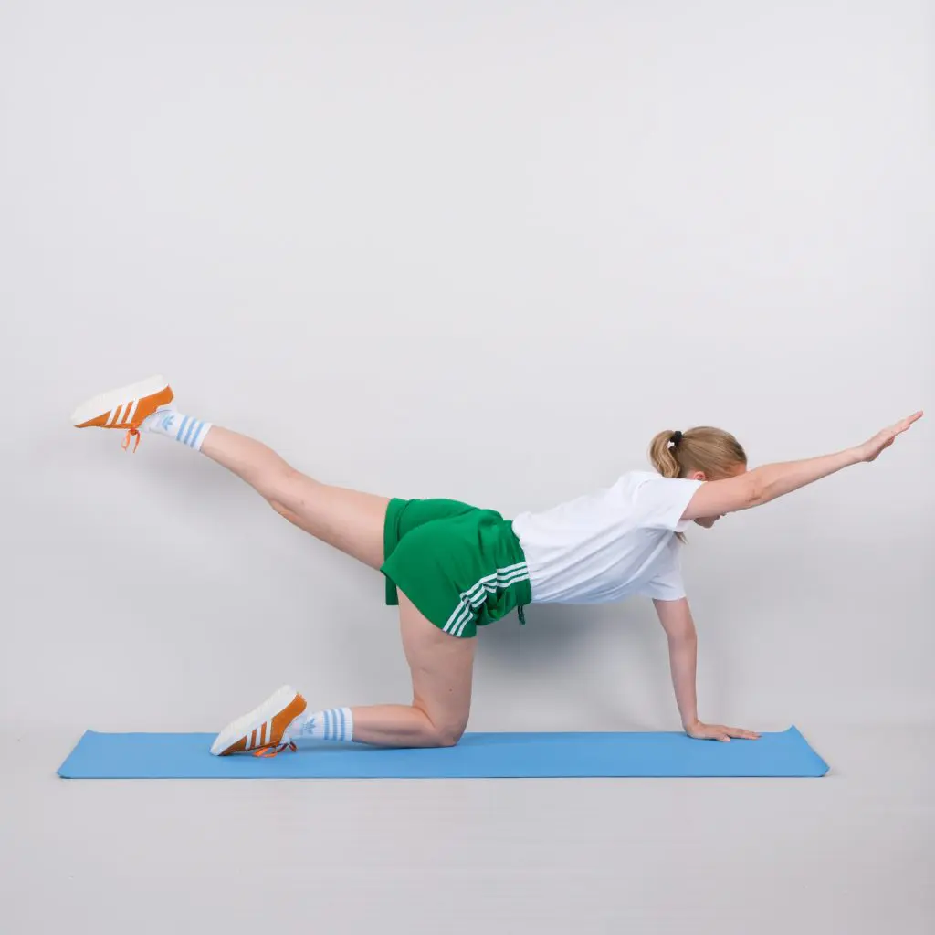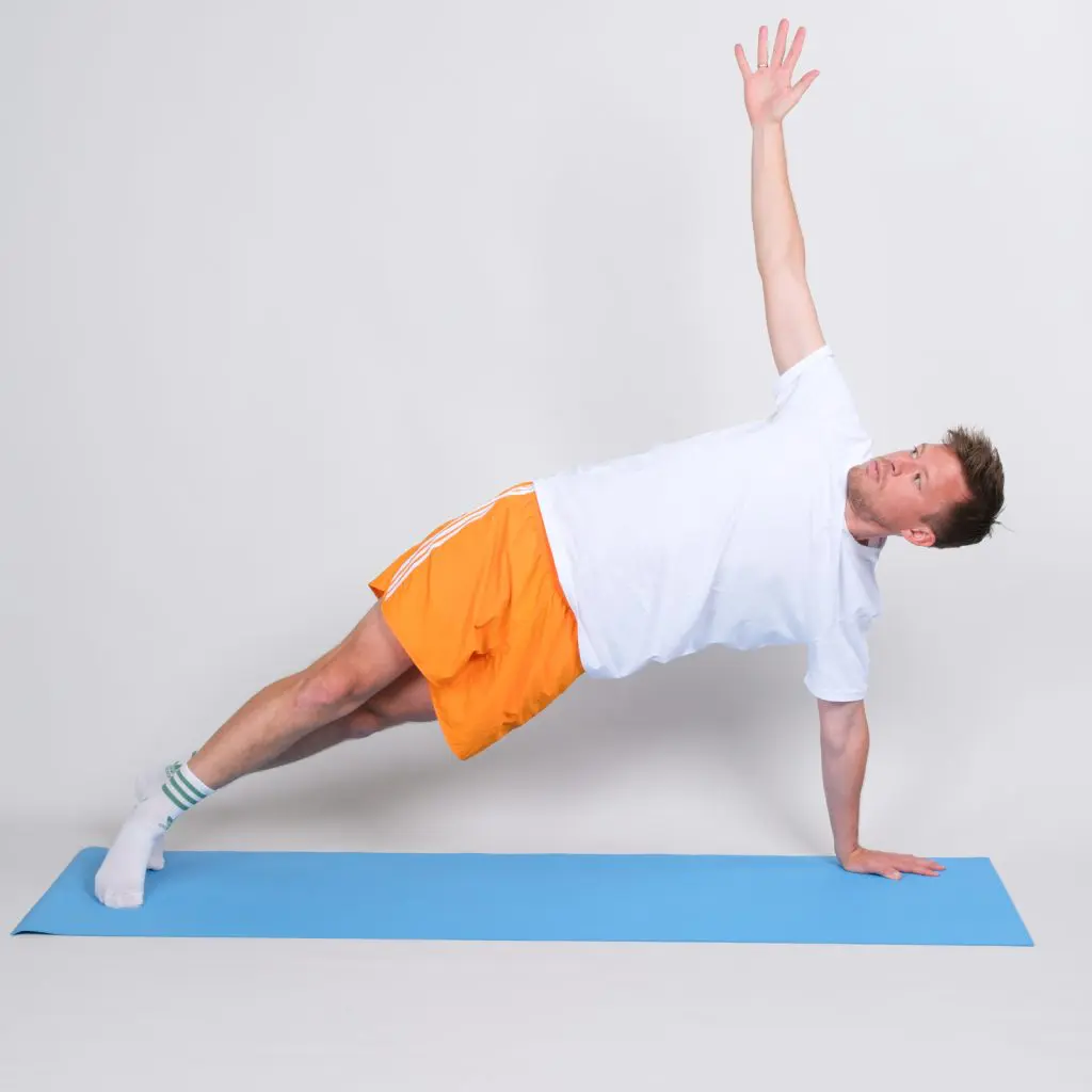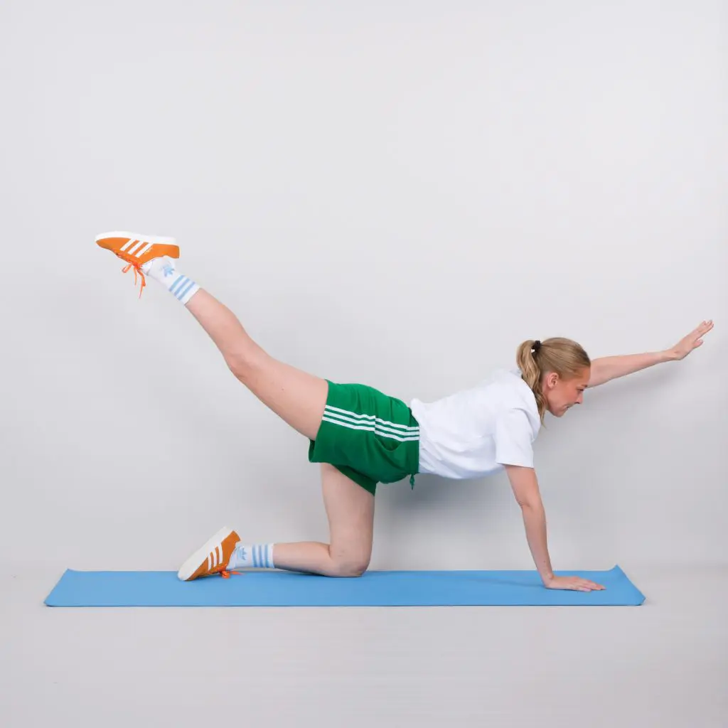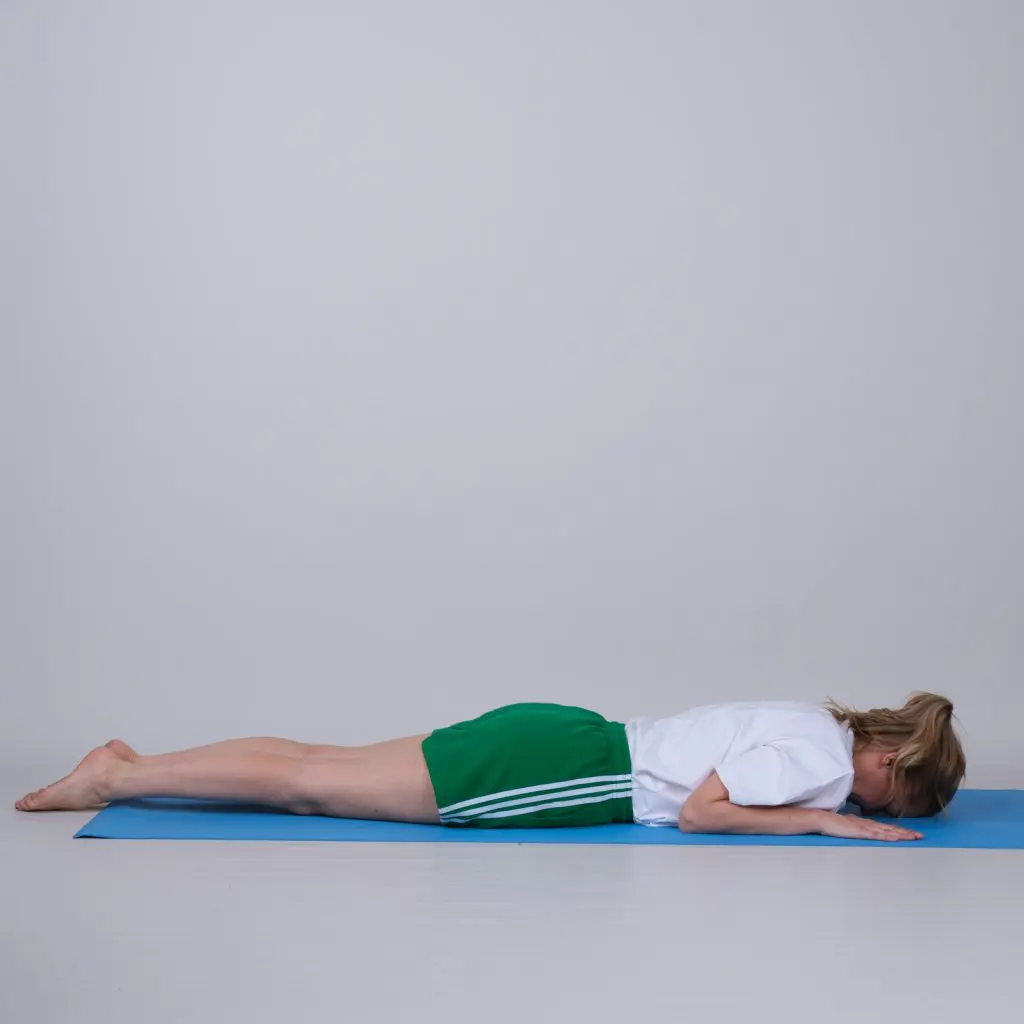 Øvelsen kan også udføres liggende på siden eller på maven.