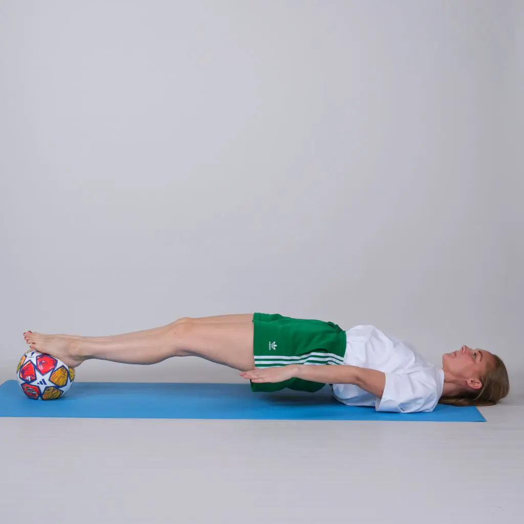 Stå på et ben. Støt med en hånd på en væg/stol. Bøj modsatte knæ og tag om foden med hånden på samme side. Træk foden op og knæet lidt bagud, så der kommer tiltagende udspænding af forlåret. Hold udspændingen i 20 sekunder. Gentag øvelsen skiftevis på højre og venstre ben.