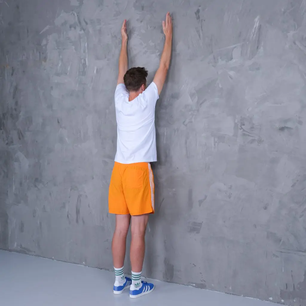 Stand with your training arm stretched down along your body. Slowly bring the arm out to 20 degrees. Hold the tension for a few seconds and lower the arm again. Then extend your arm to 40 degrees. Hold the tension for a few seconds and lower the arm again. Finally, extend the arm to 60 degrees. Hold the tension for a few seconds and lower the arm again.
