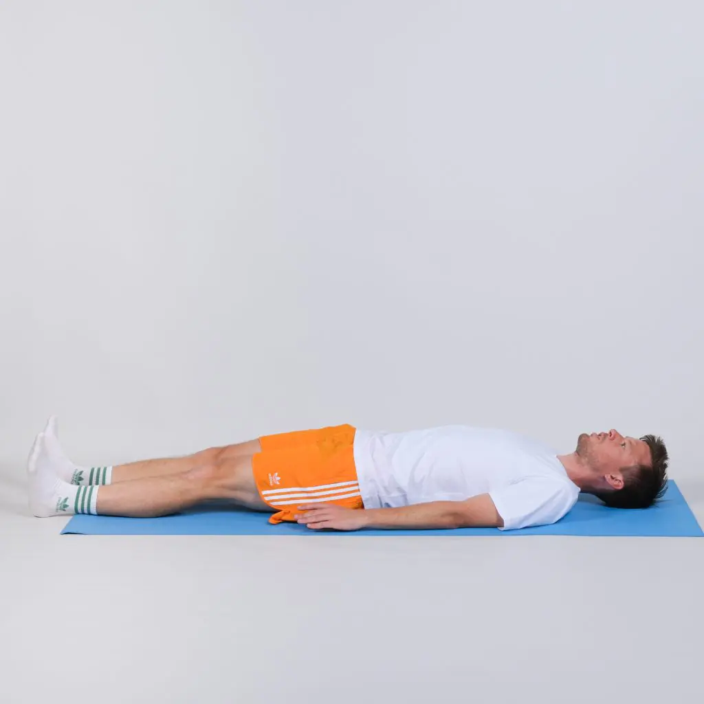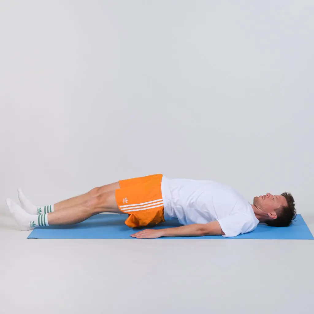 Øvelsen kan også gøres, mens man ligger på siden på et bord/en briks. Bøj det nederste ben op under dig og lad det øverste ben hænge ud over kanten af bordet, så der kommer tiltagende udspænding af ydersiden af låret. Hold udspæn-dingen i 20 sekunder. Vend dig og lav samme øvelse på modsatte ben.