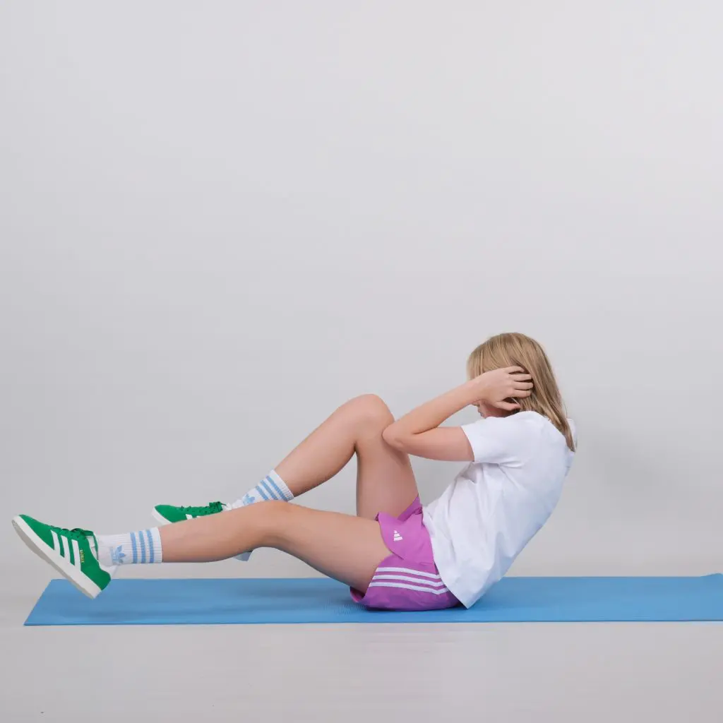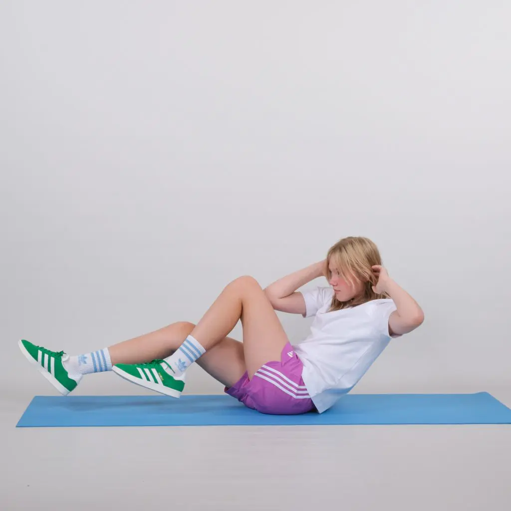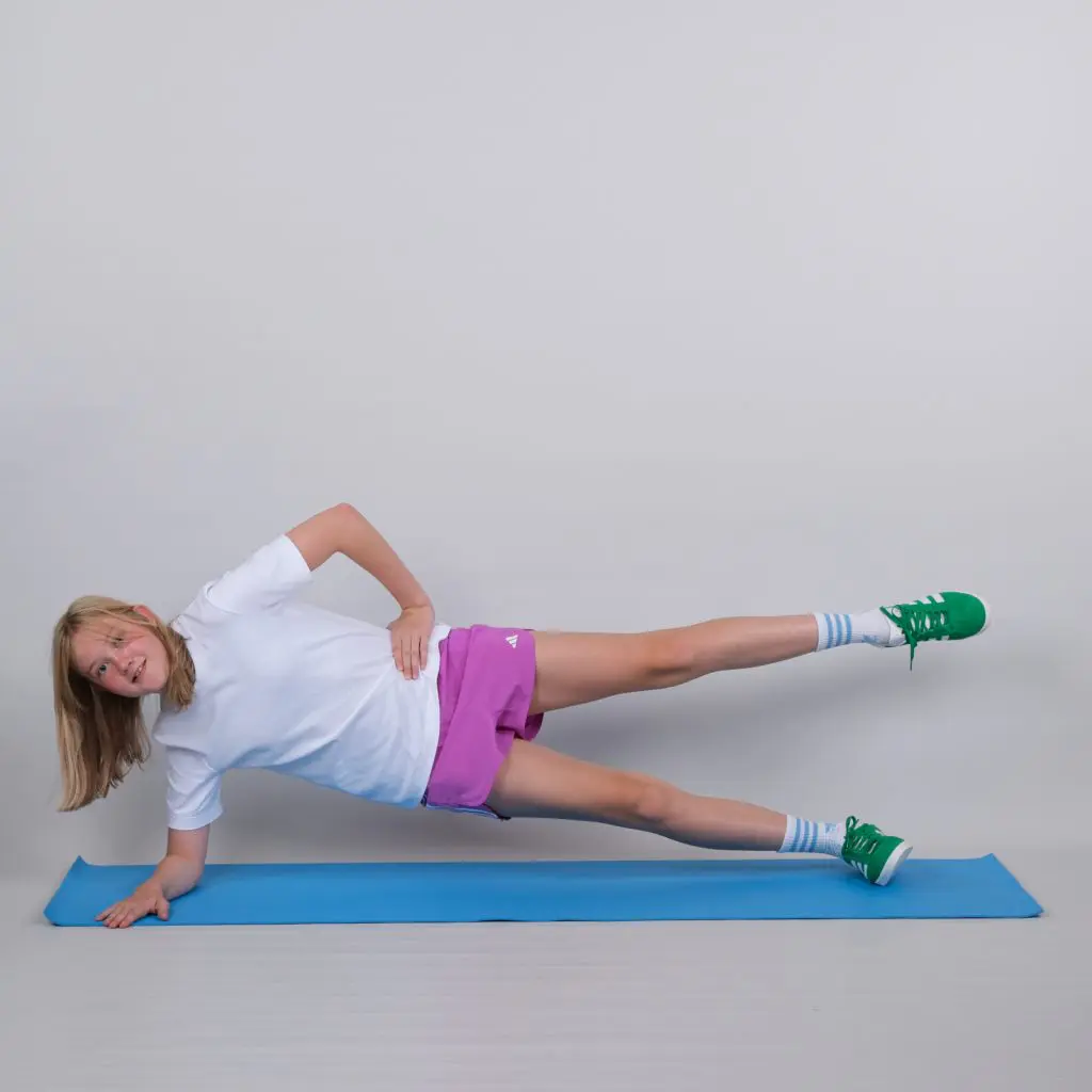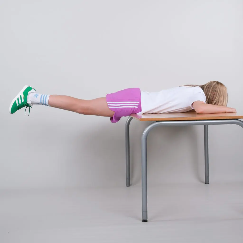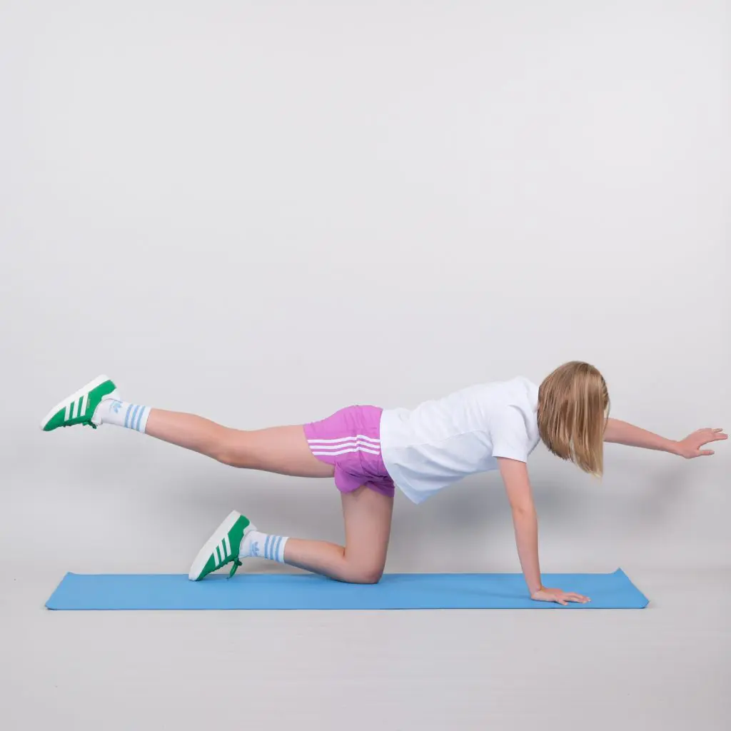 Sid på venstre knæ og højre fod. Højre ben bøjes 90 grader i hofte og knæ. Venstre knæ stækkes så langt bagud som muligt, og foden er løftet op og hviler på en lille kasse. Skyd hoften fremad og nedad uden at svaje i lænden, så der kommer tiltagende udspænding foran på hoften. Hold udspændingen i 20 sekunder. Gentag øvelsen på modsatte ben.