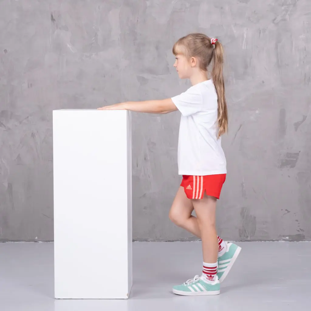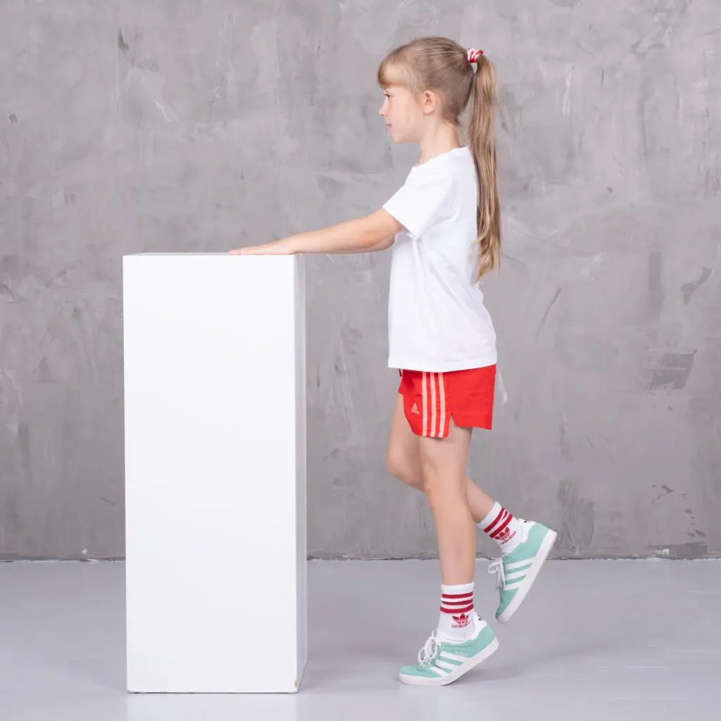 Stå på det venstre ben. Støt evt. med venstre hånd mod væggen. Bøj højre knæ og tag med højre hånd om storetåsiden af forfoden, så fodleddet strækkes og drejes lidt udad, og så hælen kommer mod balden, og så der kommer tiltagende udspænding af indersiden af skinnebenet. Hold udspændingen i 20 sekunder. Gentag øvelsen skiftevis på højre og venstre ben.